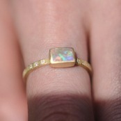 美しいオパールをシンプルに仕立てたリングは、lazo jewelryで人気のデザインです。大人の女性の日常使いに是非おすすめ致します。