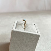 こちらはアームの上にちょこんと乗ったようなシルエットが特徴のリングです。ペアシェイプ型のオパールが指元で美しさをより引き出してくれます。こちらは小粒ながらもブルーカラーのとても美しい遊色が均一的に見られます。K10素材にしたことで、優しいゴールドカラーとも相性が良く、付け心地もとても軽やかです。オパールの周りをぐるりと裏側まで地金があることで、オパールを皮脂などの汚れや衝撃から守ってくれる役割をします。何よりも遊色のカラーをより一層はっきりと美しく引き出してくれます。