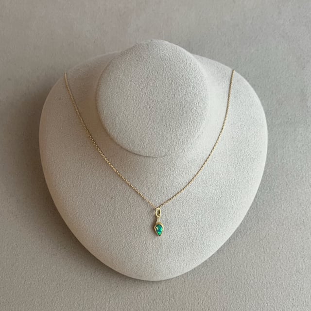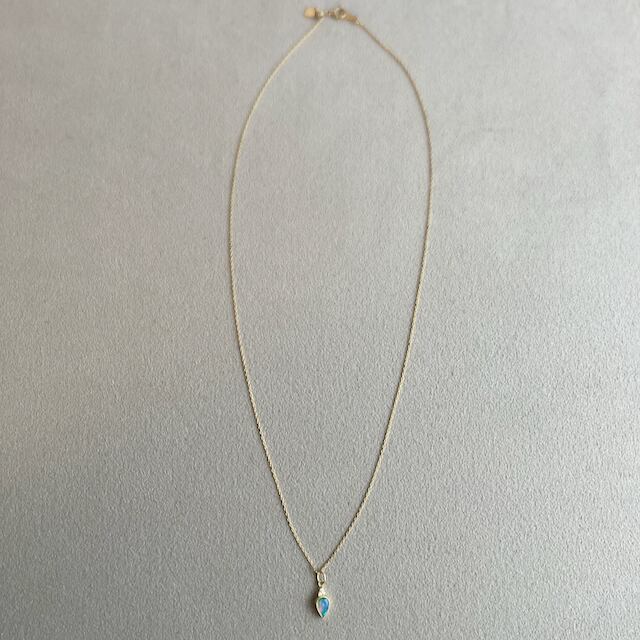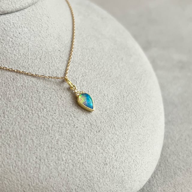 下向きペアシェイプの上にちょこんと極小粒のダイヤモンドを3石配置してアクセントにした新しいデザインです。オパールもダイヤも楽しめる女性らしいデザインの中にも甘くなり過ぎず、スタイリッシュに身に付けられる魅力的なネックレスです。