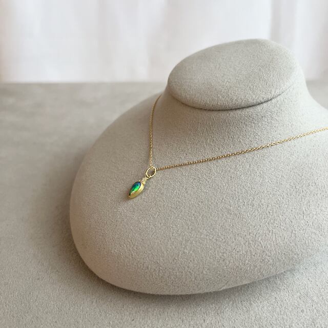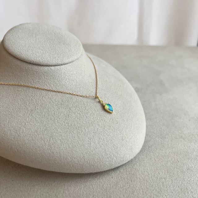 ひとしずくの光を閉じ込めたように、胸もとでそっと輝くオーストラリ産クリスタルオパールのネックレス。
