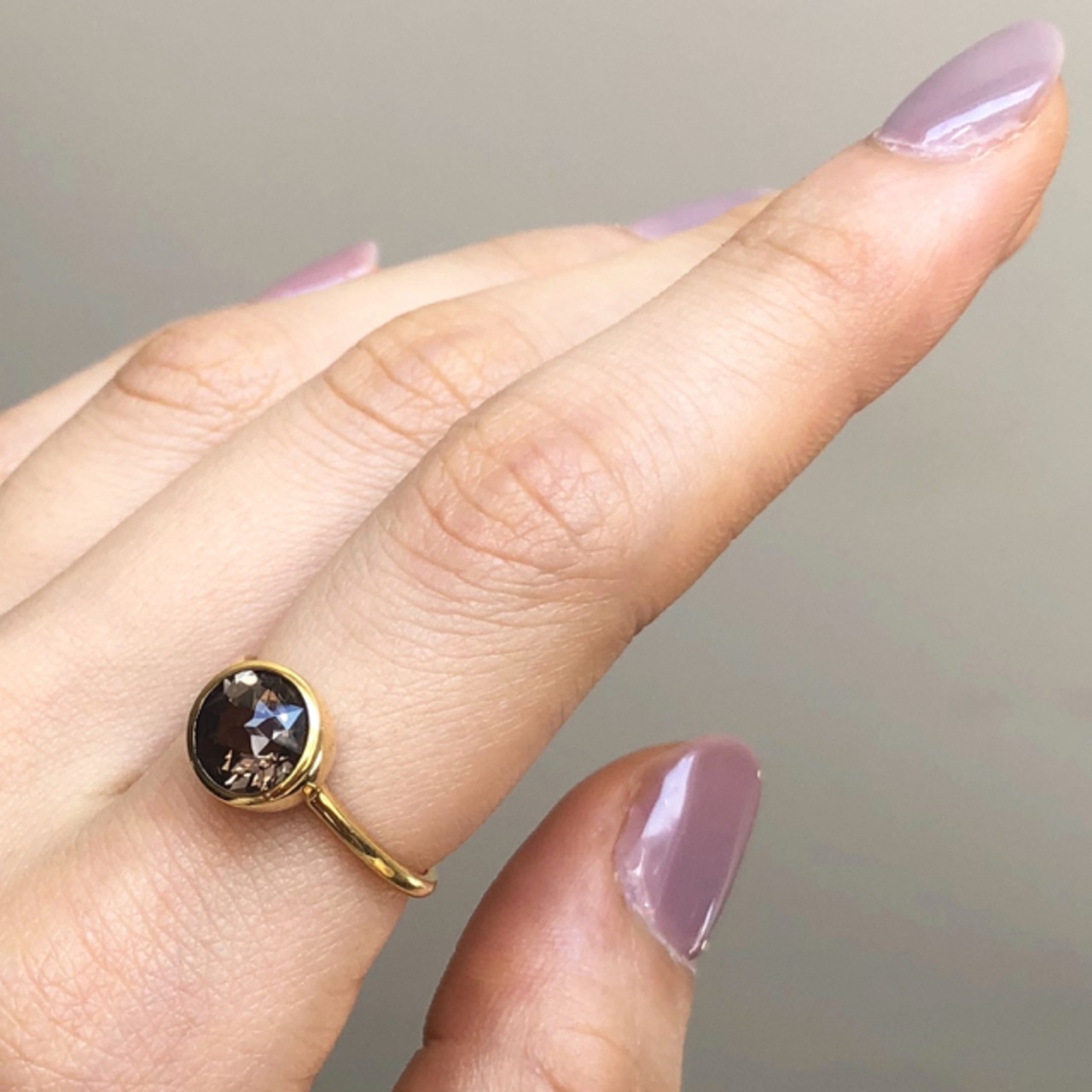 スモーキークオーツのしっかりとしたブラウンカラーがお肌に馴染み、落ち着いた雰囲気を演出してくれます。